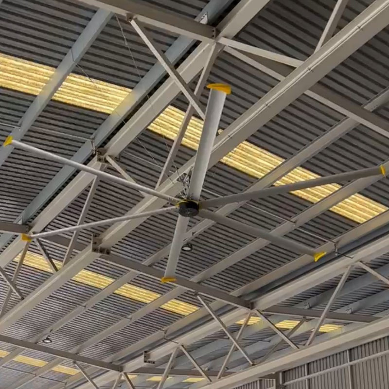 - Ahorro energético frente al aire acondicionado: Los ventiladores industriales de techo consumen menos energía que los sistemas de aire acondicionado, proporcionando una ventilación y enfriamiento eficientes a bajo coste.